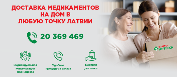 Используя услугу «Доставка медикаментов на дом», вы получите индивидуальную консультацию с фармацевтом, который во время беседы даст ценные советы и рекомендации по применению лекарств, их взаимодействию и побочным эффектам, чтобы ваш заказ был полностью укомплектован. Кроме того, услуга обеспечивает удобную и быструю доставку товаров по указанному вами адресу в любую точку Латвии.